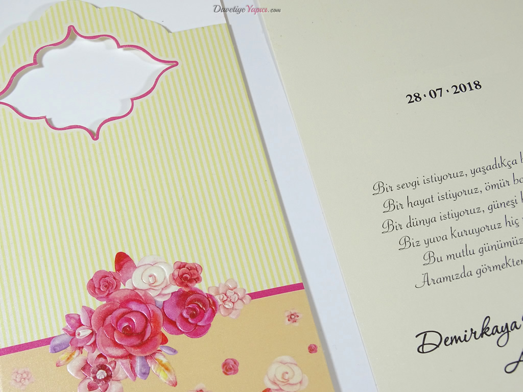 - Davetiye katlama, aksesuarlarının birleştirilmesi,kurdela bağlama, zarflama ve davetli isimlerinin yazımı müşteriye aittir.