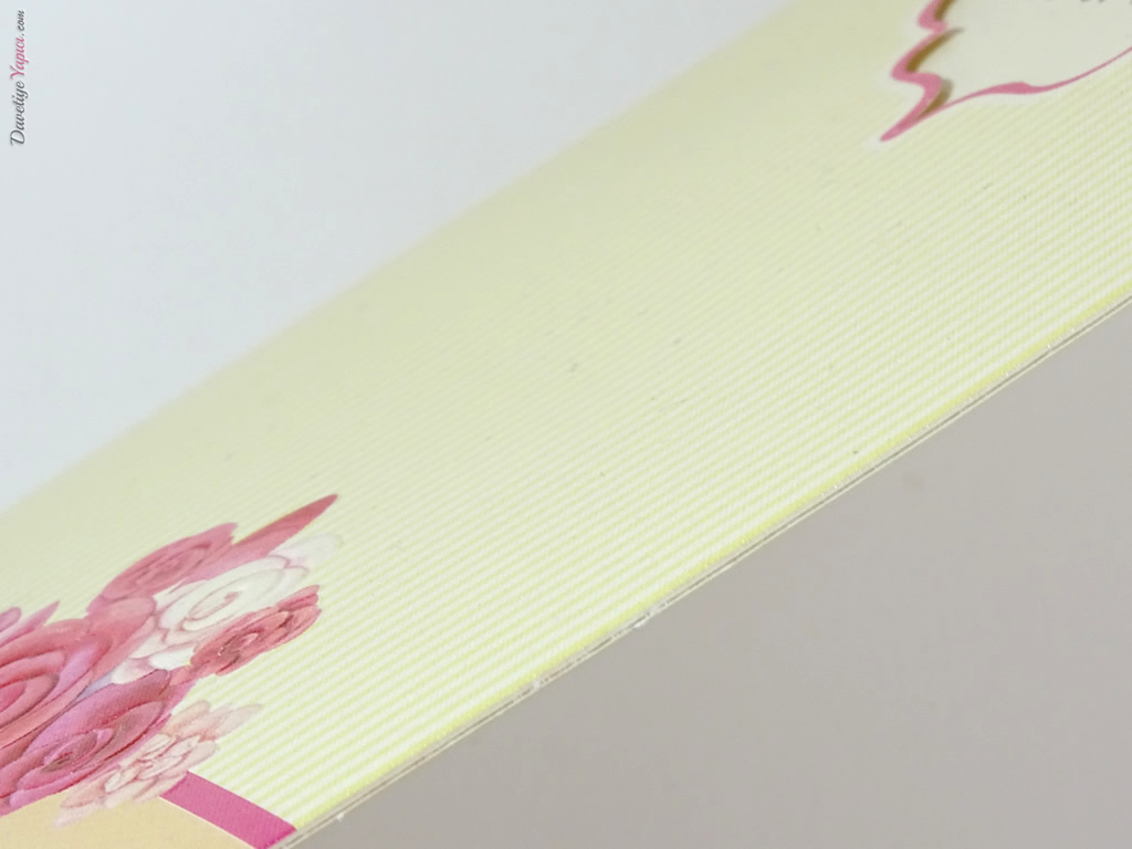 Çiçek desenli dış cep ve krem renkli iç kart olmak üzere iki parçadan oluşmaktadır.