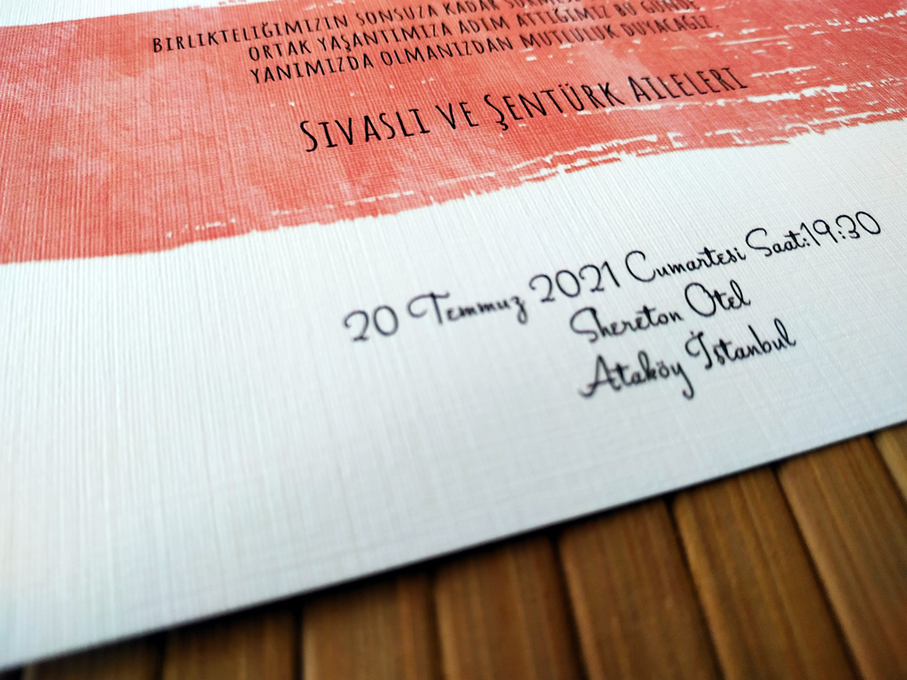 • Davetiye iç yazıları siyah renk olup için isteğe göre farklı renk uygulanabilir.