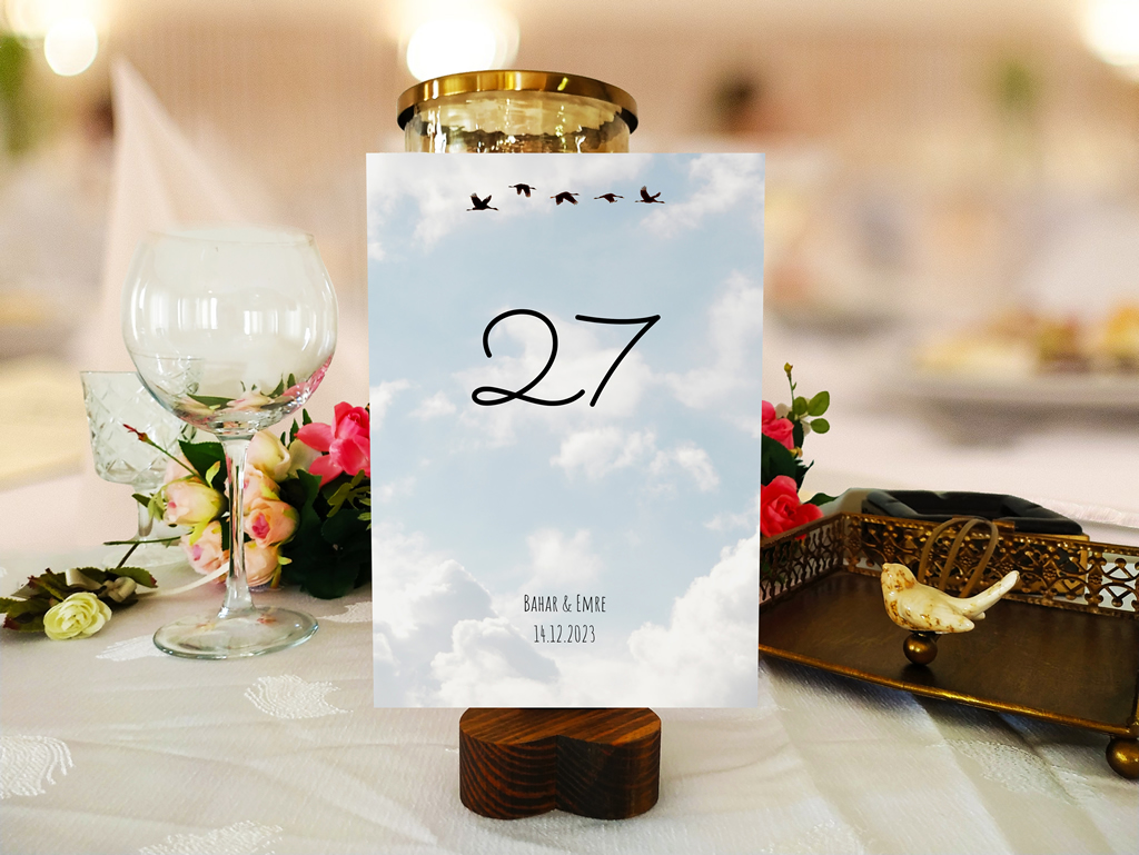 300gr/m2 kalınlığında kuşe zemine gökyüzü ve kuşlar temalı masa kartı. Kart Ebatları 14x20cm. Oturma planı düzeninde işinizi kolaylaştıracak, seçkin ve gösterişli Masa Kartları kullanabilirsiniz.