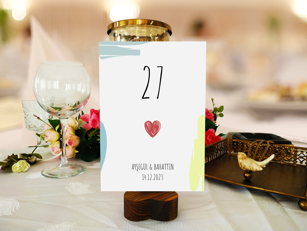 - Masa Kartı yazıları siyah ve kırmızı renktir, isteğe göre farklı renk uygulanabilir.