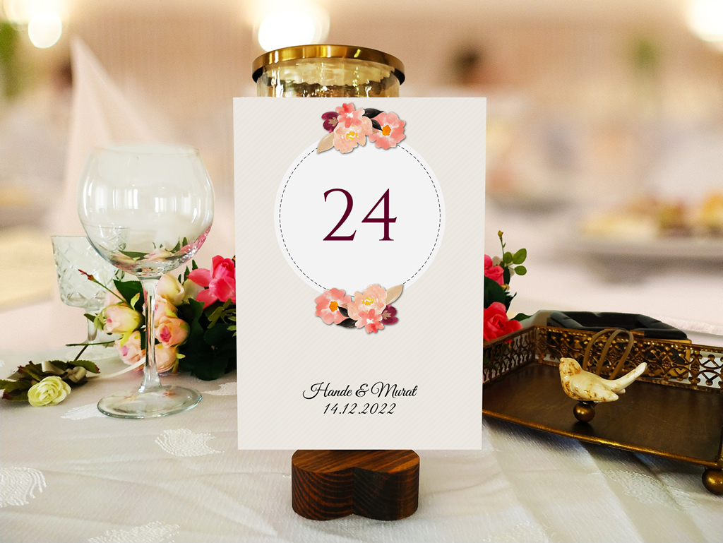 - Masa Kartı yazıları bordro ve siyah renktir, isteğe göre farklı renk uygulanabilir.